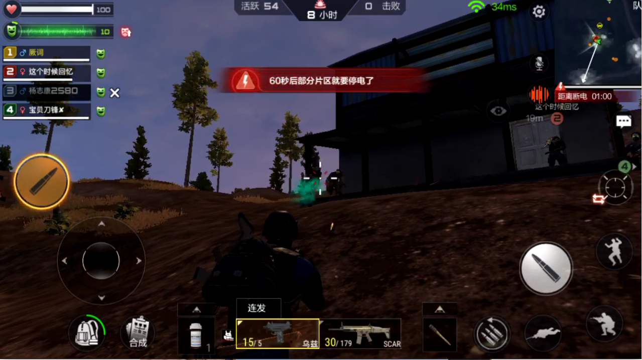 转移阵地,最终12小时要跑路 为了给玩家带来更为紧密的战斗,游戏中也引入了类似毒圈的“停电”机制。地图上的城镇会随机停电,玩家需要转移到有“光源”的地方。 “停电”相对于其他缩圈的说法来说更接地气,更能融入世界观,也让玩家的代入感更加强烈。 *加固门窗可以防御僵尸的攻击