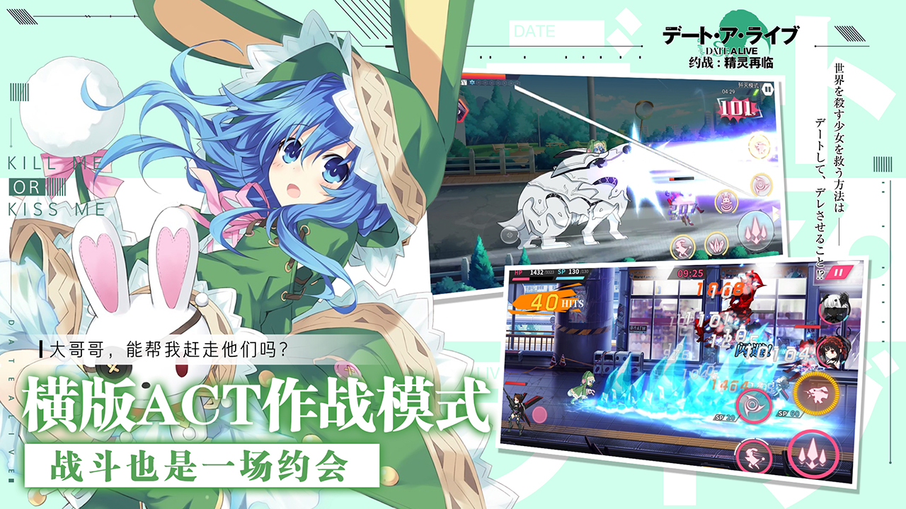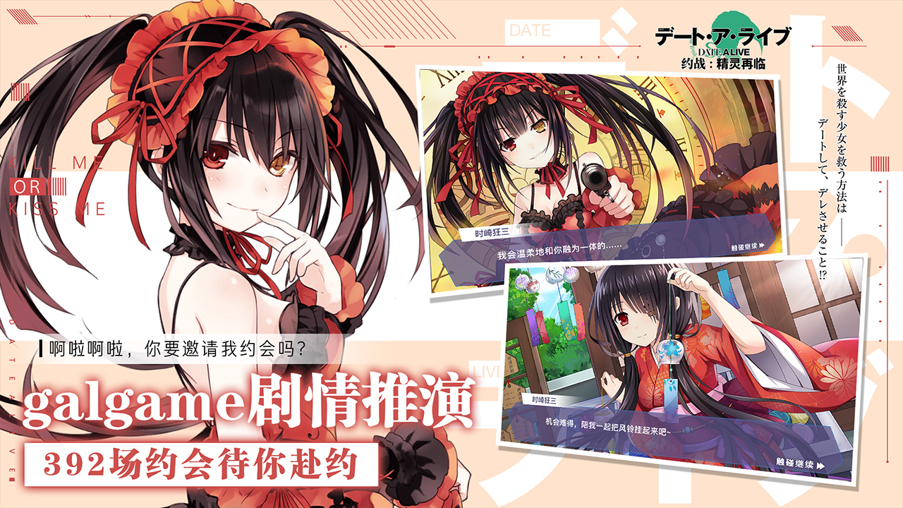 约会大作战正版手游《约战:精灵再临》是一款日本角川书店授权,动画原CV倾情献声的恋爱动作手游,以横版格斗的战斗模式与文字恋爱玩法为主体,同时富含各类模拟养成和社交休闲内容。 现在,开始我们的约会吧!