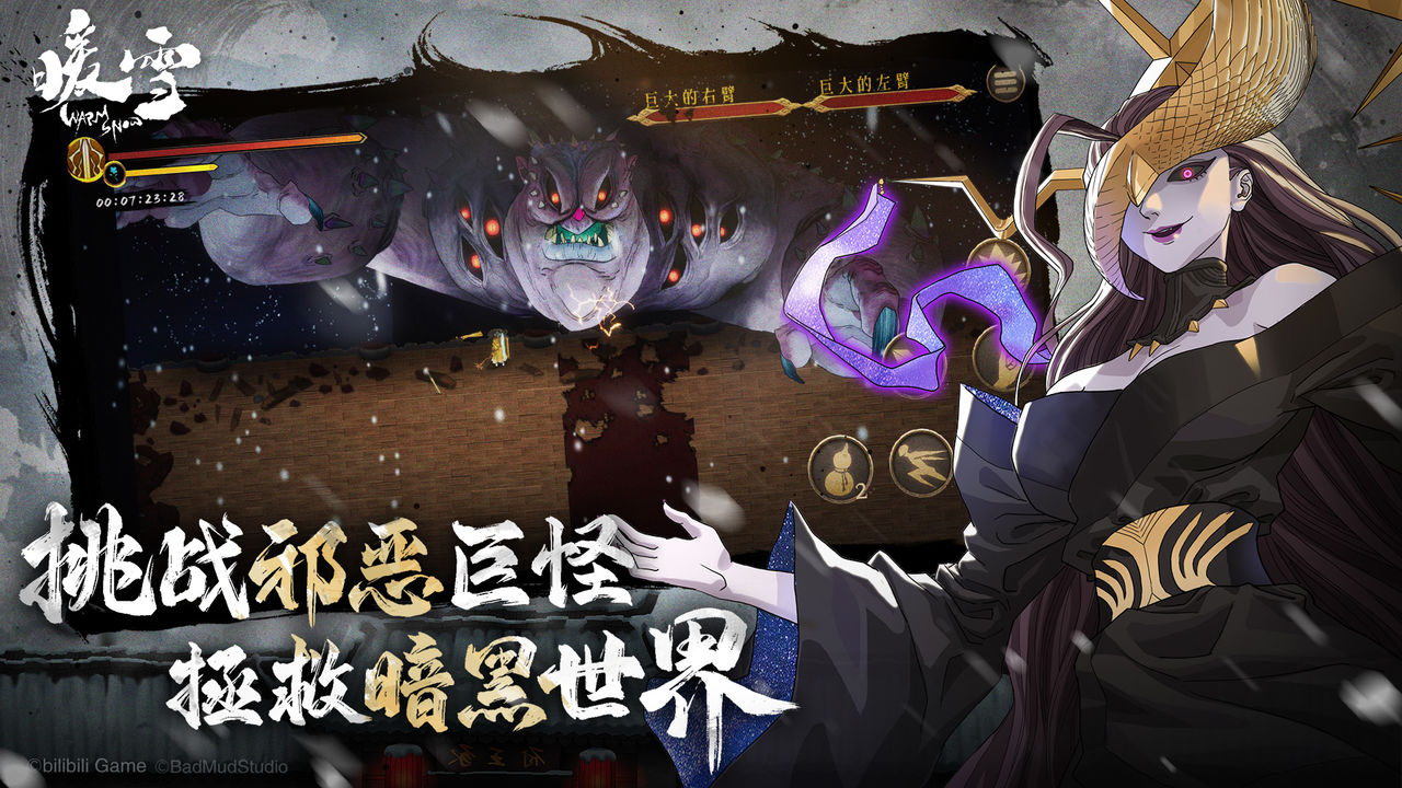 《暖雪》是一款暗黑国风动作roguelite游戏。游戏以诡异的“暖雪”为核心打造了一个完全架空的黑暗奇幻世界,你将扮演代号“狴犴“的侠士去讨伐五大家族,拯救这个摇摇欲坠的世界!