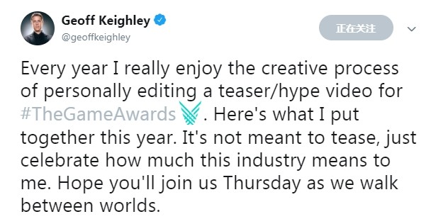 TGA 2018将在周五早上开幕,TGA官方今日也公布了典礼宣传片,让我们一睹各大游戏作品争相竞艳。不过就在这段宣传片中也出现了一个惊喜的“彩蛋”,那就是《细胞分裂》主角鱼叔一闪而过的镜头。 《细胞分裂》主角鱼叔画面 虽然过去一年里育碧《细胞分裂》新作的传闻不绝于耳,但一直都没有“实锤”消息公布,不过在今年TGA上可能鱼叔就要从“谣言榜”中被剔除,出现在“新作期待榜”上了。 从视频截图中我们能清楚看到头戴夜视仪的鱼叔登场,而这一画面则来自之前《幽灵行动:荒野》与《细胞分裂》联动的内容。《幽灵行动:荒野》是一款2017年初发售的游戏,本届TGA候选名单也没有它的身影,所以宣传片出现的画面很显然并不是着眼于这款游戏。 Geoff Keighley:宣传片不开玩笑 每届TGA宣传片都是由创始人Geoff Keighley亲自剪辑的,而视频中所出现的基本传达了他想要给大家看的内容。而且Geoff Keighley表示,宣传片绝对不是为了“调笑逗乐”(It's not meant to tease)。所以放出这样带有明显暗示的画面在宣传片中,明眼人都能看出这绝对与《细胞分裂》游戏有关联。究竟事实如何,TGA 2018现场我们将见证一切。