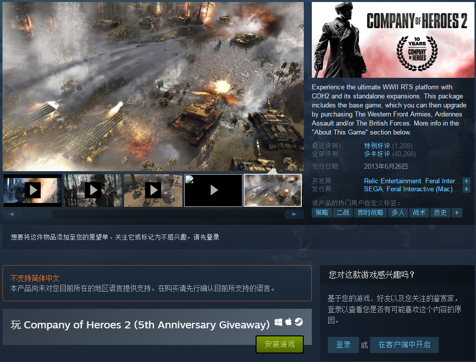 今日Steam开启新福利活动,即时战略大作《英雄连2》限时免费领取。从今日开始到12月11日,玩家可以免费领取这款游戏,感兴趣的玩家赶紧登上Steam喜+1。 《英雄连2》于2013年6月25日发售,整个游戏的战役剧情将以一名前参军战士奔赴前线作为特派员的视角进行,游戏的重点将放在苏军对抗纳粹展开。 游戏以小队和主角的剧情来展开整个战争,同时环境元素扮演着影响玩法的要素,游戏里的单位可越过矮墙等建筑群,雪漫的城镇会影响战士和坦克的行动速度,烟雾会阻挡视野。游戏还提供了奇袭玩法,玩家可在敌军没有察觉的情况,对敌方部队进行突袭等等,同时整个游戏的战场都是动态变化,相互影响。 |
