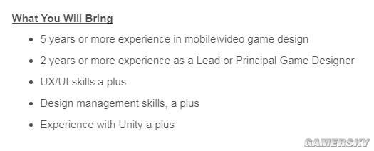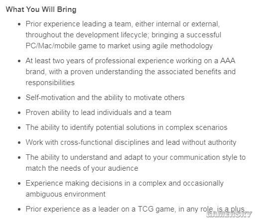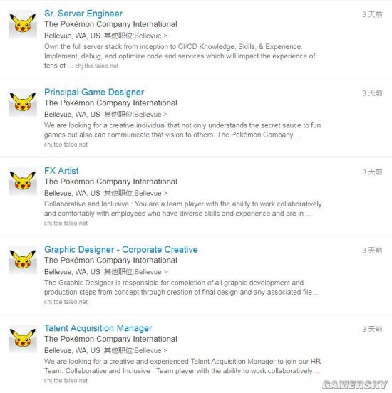 据GameInformer报道,宝可梦公司近日在LinkedIn公布了大量招聘启事,岗位涉及到游戏设计师、制作人、服务器工程师等,综合所有的招聘信息,宝可梦公司可能正在考虑使用Unity制作一款集换式卡牌游戏。 根据LinkedIn的信息,应聘设计师需要拥有手游或视频游戏的相关经验,熟悉Unity引擎是额外的加分项。服务器工程师则需要有在线社交游戏的开发经验。另外,制作人招聘页面显示,应聘者需要曾至少参与过一款3A级游戏项目,如果曾担任过TCG(集换式卡牌)游戏的主要制作人就更好了。 |