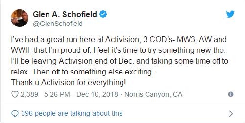 Sledgehammer Games和动视之间的合作是个非常成功的典型案例。该工作室由前EA Visceral的老将们创立,首先与Infinity Ward合作开发了《使命召唤8:现代战争3》,然后在2014年开发了广受欢迎的《使命召唤11:高级战争》,在去年也带来了工作室迄今为止最大的成功《使命召唤14:二战》。 但根据最新消息,Sledgehammer联合创始人格伦·斯科菲尔德(Glen Schofield)将在今年年底退出动视。 斯科菲尔德在Twitter上发表了这一消息,并表示他对动视在过去的提供的深入合作深表感谢,同时对未来的发展十分渴望。 此外他表示自己将会先休息一下,之后投入到“令人兴奋”的新企划当中。 |