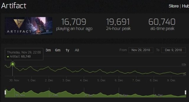 自11月29日正式上线以来,V社旗下卡牌游戏《Artifact》仅发售不到两周玩家数量就开始急剧下降,玩家在线峰值相较刚发售时的六万人减少了三分之二,好评率也仅剩下57%。 作为V社制作的全新集换式卡牌游戏,《Artifact》在发售当天峰值在线人数达到了56353人,在Steam游戏在线人数排名中位居第四,仅次于《Dota2》、《绝地求生》、《CS:GO》等几款老牌热门游戏。但游戏本身对于零氪玩家的不友好引发了不少玩家的集体吐槽。 面对当前持续遇冷的态势,V社如果不做出点改变恐怕是难以扭转目前的局面,增加游戏内卡牌获取途径或者取消交易税都将是V社可以采取的措施了。 |
