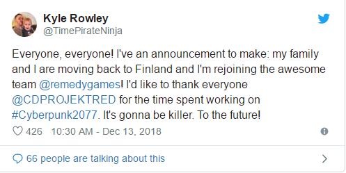 Kyle Rowley是CD Projekt RED即将发售的《赛博朋克2077》的副设计总监,他最近在Twitter上宣布将离开这家位于波兰的游戏工作室,带着家人回到芬兰老家。 尽管他是开发团队中的一名关键成员,但Rowley在他的推文中向粉丝保证,尽管游戏在后续的开发中将没有他的参与,但《赛博朋克2077》依然“将成为杀手级游戏”。 同时,他也在同一条推文中提到他加入了Remedy Entertainment的团队,这对他来说也是一个非常好的机会。据推测,他将参与即将到来的《控制》的开发工作,除非Remedy还有其他尚未公开的游戏在开发中。 |