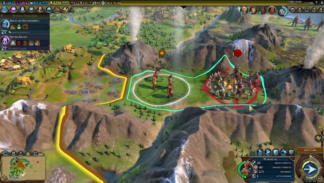 文明特色改良设施:梯田农场 梯田农场仅能建造在丘陵上,将提供食物,与山脉相邻时还可提供额外食物。与“水渠”和淡水相邻时则能提供生产力。 文明特色能力:米塔制度 米塔制度让印加可以对山脉单元格进行改良,山脉单元格能提供生产力,与“梯田农场”相邻时还可提供食物。 文明特色单位:瓦剌卡战士 “瓦剌卡战士”是中世纪时期的侦察单位。若未用尽自身移动力,即可在一回合内发动2次攻击。 领袖特殊能力:印加路网 国内贸易路线将基于发源城市中的山脉提供额外食物,研究“对外贸易”市政后印加还能修建“印加路网”改良设施。“印加路网”后期可升级为全新改良设施“穿山隧道”。 对印加文明而言,山脉单元格并不仅仅是天然屏障而已,在帕查库特克特色能力的加持下,修建大量“梯田农场”的印加必将在群山之间繁荣发展。借助无比强大的国内贸易路线,帕查库特克无需过于担心外部影响,可以专注地将印加建设为伟大的孤立主义文明。你您能否带领印加抵达那高耸如云的山峰之巅? 《文明6:风云变幻》将于2019年2月14日发售,登陆PC平台。 |