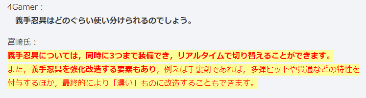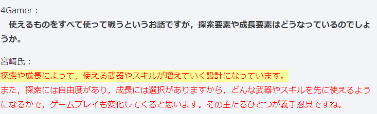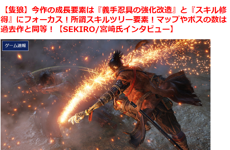作为年末惯例,日本各大游戏厂商制作人纷纷接受媒体采访,而备受期待的《只狼:影逝二度》制作人宮崎英高先生则在近日的采访中透露了新作《只狼:影逝二度》的最新成长要素情报。 ·《只狼:影逝二度》是一款由From Software制作Activision发行的第三人称视角的动作冒险沙盒类游戏,玩家将操控一位忍者,拯救他的主人---拥有日本贵族血统的大能的皇子,并向他的天敌复仇。游戏背景设立于16世纪末的日本战国,主角是在血腥冲突中濒临死亡边缘下登场的一匹独狼。玩家将面对的敌人是既恐怖又巨大的各种日本妖魔鬼怪,不过借助强大的忍者技能可以让我们无声潜行、勾索滑行各个场景,还可以一对一与这些怪兽搏斗。 ·《只狼:影逝二度》游戏将主打《探索》要素和《成长要素》,玩家在探索中选择什么样的武器和技能,游戏过程也会发生不同的变化,而本作最重要的改造武器就是主角的义肢假手。 ·本作中《义肢假手》可以同时装备不同类型的3只,适应不同场合可以即时切换,而且玩家们喜闻乐见的改造强化系统就围绕着这只假手展开,例如忍者常用的手里剑就可以改造成多发散弹类型或者强化单发伤害类型等等,更多新要素需要玩家在游戏中慢慢探索。 |