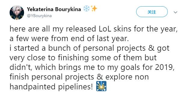 随着2019年的到来,很多玩家喜欢进行年度盘点,回顾自己在过去一年的表现,也是对工作和生活上的一个盘点。英雄联盟的设计师也不例外,他们纷纷分享了自己过去一年的工作。皮肤团队的3D角色美术师YBourykina,1月1日在个人推特上,回顾了自己在2018年的作品,和分享了自己在今年的一些新计划。 YBourykina分享了自己在2018年制作的英雄联盟皮肤,包括了情人节霞洛、抵抗军俄洛伊、SSG纳尔、SSG霞洛、SSG伊泽瑞尔、西部魔影锤石、海克斯雷克顿、冰雪节蒙多和冰雪节索拉卡。总体来说,YBourykina在去年参与了11款皮肤的制作,其中包括了4款世界冠军皮肤,以及两套霞洛组合的皮肤。 看起来在皮肤团队中,YBourykina也是受到了重视,他的工作也是并不轻松,不少玩家也是称赞了他的作品,表示YBourykina的很多作品,都是2018年质量相当高的皮肤。比如这款锤石皮肤,就已经受到了很多职业选手的喜爱,而纳尔的SSG冠军皮肤,也常常可以在排位赛中看到。YBourykina感谢了玩家们的称赞,表示自己会更加努力。 虽然YBourykina无法剧透自己在2019年会制作那些英雄的皮肤,但他还是分享了自己在2019年的个人目标,他表示希望自己可以完成一些独立的个人作品,并且探索更多非手绘的美术风格。在玩家的追问后,YBourykina也是进行了解释,他希望自己可以制作一些类似于最终幻想那种光线运用更加细腻的皮肤。 值得一提的是,霞洛组合是英雄联盟中最受欢迎的情侣英雄,YBourykina为他们制作了两套情侣皮肤,玩家好奇在2019年中,YBourykina能否为霞洛组合制作一套"死亡誓约"主题的皮肤。因为YBourykina之前制作过死亡誓约卡特琳娜皮肤,那款皮肤得到大家的好评。YBourykina认为死亡誓约是一个很酷的主题,他也希望有朝一日可以制作霞洛的主题皮肤,不过,究竟能否实现呢,那就是要看皮肤团队负责人的意见了。 有玩家也是吐槽地表示,他发现YBourykina在2018年制作的大部分皮肤,都是蓝色作为主调,包括SSG战队和冰雪节皮肤。YBourykina也是承认确实有这个现象,包括他在2017年制作的死亡誓约,都是蓝色作为主调。因此,他会在2019年中尝试推出更多其他颜色的皮肤,希望能够带给大家更多有趣的作品。皮肤团队的成员们,将在1月中旬正式回到正常工作,让我们期待YBourykina和其他美术师带来更多的新皮肤。 |