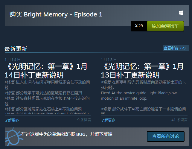 1月12日,国产游戏《光明记忆》登陆steam,一经发布便好评如潮,这种独立开发游戏荣获无数赞誉的例子数不胜数,但这款游戏却与众不同,因为……他是一个人用虚幻4开发的?! 众所周知,3a游戏一般都要数十甚至上百人(有时动辄上千人)开发数年,一个人开发大作可以说是痴人说梦。但是,《光明记忆》确做到了很多大厂商做不到的品质。首先是画质的问题,虽然里面的材质贴图都是几年前的水准,但凭借虚幻4引擎出色的光影硬是让本作的感官有了质的飞跃,如果你不深究,根本无法看出它与一般3a大作的差距。 游戏的系统类似无主之地的战斗方式,近战,射击,技能,大招一个不缺,配合上bgm短时间内便让玩家热血沸腾。通过击杀怪物获得的经验解锁技能的传统rpg模式以及解密要素让游戏的可玩程度再上一层楼。 值得一提的是,在本作中玩家可以看到诸多其他游戏的影子,例如泰坦陨落,使命召唤,神秘海域,甚至打迷失森林的boss战都让人想到了老版德军总部的最后一关,里面的黑魂梗更是不禁让人会心一笑。 另外,游戏尴尬的场景转换和僵硬的人物动作虽然无伤大雅,但依旧对体验有不小的影响,不过本作真正的问题在于游戏的节奏。场景设计以及对节奏的把控是本作和其他3a游戏最大的缺陷,似乎游戏除了不错的战斗系统以及单薄的剧情外没有其他的内容,所以这就导致玩家基本上不是在战斗就是在去战斗的路上。当然,它目前来说也只是个体验版。 目前,该游戏正在steam热卖,售价仅仅是29元,就目前看来这游戏的收益都会被作者用到开发游戏上,发售短短3天也发布了2次更新补丁。如果你的手头还算宽裕,是一个热爱国产游戏的玩家,不妨买一份来支持一下,毕竟比起其他虚无缥缈的大饼,《光明记忆》如同黑暗中的一丝光亮... |