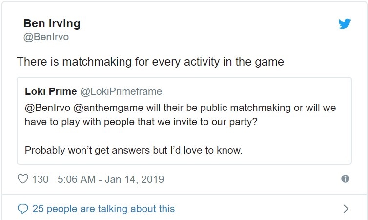 《圣歌》首席制作人Ben Irving确认《圣歌》中每一个活动都支持公开匹配游玩,没有好友也没有关系。 最近有玩家在Twitter上向他提问称,《圣歌》中是否有公众匹配还是说只能邀请好友组队游玩?Ben回复说游戏中每个活动都支持匹配游玩,这意味着《圣歌》中的高难度副本任务,自由探索模式,故事任务,世界活动等等都支持公开匹配游玩,让那些没有好友或者是不能和好友组队的孤狼玩家能和其他玩家在线匹配游玩。 之前《圣歌》制作人Thomas Singleton曾表示《圣歌》的真正卖点是联机游玩,而不是单人游玩,因为单人游玩奖励不是那么丰厚。《圣歌》单人可以游玩除了副本之外的所有内容,副本任务难度太高,因此不支持单人,必须组队或公开匹配。 对于公开匹配,共享世界类射击游戏,比如《命运》系列也是支持这种设计,但实行起来有一些难度。之前《命运》匹配系统就经历了重大改动。不同玩家的网络质量不同,如果延迟太高了,势必会影响游戏体验。 《圣歌》将于2019年2月22日发售,登陆PC,PS4和Xbox One,支持简体中文。 |