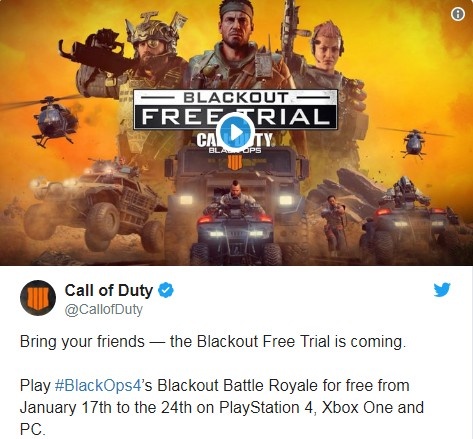 今日,动视和Treyarch宣布从今年1月17日开始PS4/Xbox One和PC玩家们都可以免费使用《使命召唤15:黑色行动4》的“吃鸡(Blackout)”模式。截止到本月24日,COD15的玩家玩家们都可以免费下载和游玩“Blackout”模式。 在“Blackout”模式中,玩家们还会在经典的“使命召唤”场景中进行战斗,同时在游戏中扮演自己最喜欢的角色。玩家会用“滑翔机翼”的形式进入“Blackout”模式中,并以前所未有的方式在陆地,海上和空中中驾驭这重史无前例的玩家体验,以及享受在COD系列历史上最大的地图中战斗的快感。 《使命召唤15:黑色行动4》的“Blackout”模式是一个极受欢迎的游戏模式,它汲取了《绝地求生:大逃杀》和《堡垒之夜》的成功之处,并结合COD本身的游戏特点。我们在过去看到其他开发者试图通过他们自己的战斗大逃杀模式来吸引玩家,但是“黑色行动4”是第一个能够接近“绝地求生”的大型3A游戏(尽管仍然只有一张Blackout地图) 。无论如何,最重要的是玩家们现在能免费游玩“Blackout”模式了,并且可以亲自看看它是否是你感兴趣的东西! |