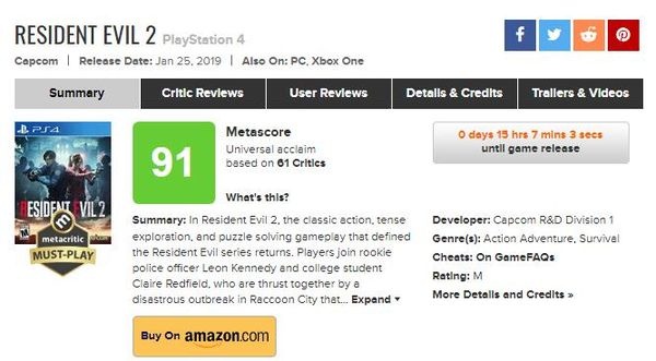 《生化危机2:重制版》距离正式发售还有不到一天的时间,Capcom官方今日正式放出了本作的发售预告片,各位玩家准备好启程前往“浣熊市”了吗? 在发售预告片的结尾部分,官方又一次展示了本作的“第四幸存者”模式以及“豆腐”模式,同时还有昨天刚公布的全新“幽灵幸存者”模式。在“幽灵幸存者”模式将会在游戏发售后通过免费更新上线,该模式下玩家将提供三名全新的可操控角色“Robert Kendo”(武器店老板)、一名神秘的U.S.S成员和“Katherine”(浣熊市市长女儿),同时在该模式下也将会有全新的敌人出现。 《生化危机2:重制版》的全球媒体评分也正式解禁,目前本作在MC的评分高达91分,相较昨日还上涨1分,其中IGN给出90分、GameSpot90分、Game Informer给出95分。 游戏的30分钟限时体验版已在各大平台上架,目前体验版全球下载量也已经突破了300万次,不过通关率还不到30%。 《生化危机2:重制版》将于1月25日登陆PS4/Xbox One/PC平台。 |