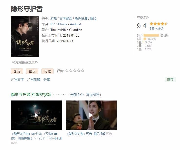 随着steam平台在国内的流行和推广,越来越多的国产游戏选择登上steam平台进行发售。目前大多数登陆steam的国产游戏都是类似于《失落城堡》之类的独立游戏,少有《古剑奇谭3》这样的大作,但今天要介绍的这款国产游戏,和现有的看上去都不太一样,那就是《隐形守护者》(The Invisible Guardian)。 《隐形守护者》是一款ADV剧情交互类游戏,和其他同类型游戏不同的是,这款游戏全程是由真人实拍的,经开发商New One Studio透露消息称,游戏的成本耗费已达千万元以上。这款游戏讲述的是民国时期,一场令人惊心动魄的谍战,由于剧情紧密,演员表演十分到位,深受玩家好评,目前Steam2827个评价中,有91%的好评率,在影视爱好者聚集的豆瓣也获得了9.4分。 在游戏中,玩家扮演一个从日本留学归来的学生,以间谍的身份在抗日战争时期打入日军内部,为抗战提供重要的情报。随着剧情发展,玩家需要在剧情之中不断地主动做出选择,让主角的潜伏征程随着玩家的选择,走上不同的结局。 不得不说,玩家们一看就知道,虽然只是简单的剧情交互游戏,但制作商显然花了大量心思。从演员的选角,剧情的安排,场景的布置等,都极好地还原了那个年代;配音也极其认真,普通话,日本话,日本口音普通话,上海话,都惟妙惟肖,旁白也很有感情。 当然,作为剧情交互类游戏,剧情自然是本作的重中之重。这一点上,《隐形守护者》显然是十分成功的。通过玩家的选择,游戏在主线方面增加了无限的可能,每一次选择都有可能带来蝴蝶效应,很可能第一章玩家做出的选择,却造成了第五章玩家的死亡。在视频的带动下,游戏的代入感非常的强,很容易沉迷其中,游戏中人物的刻画和表演也都十分到位,更加增强了玩家的体验。steam下的评论,对于剧情方面无一例外地给出了“节奏紧凑、扣人心弦”的好评。 当然,steam下面也有一些差评,主要的差评集中在“为什么游戏后半段的剧情还没放出来,说好的春节之后解锁后半段剧情呢”,可见玩家对此游戏的期待。目前游戏放出了序章至5章的剧情,6章至终章的剧情尚未放出,据g官方消息说可能在2月23日进行更新,极有可能放出6至终章内容。 《隐形守护者》目前在steam上的售价为28元,只包含前半段剧情,推荐购买包括完整10章剧情的捆绑包,价格为58元。 |