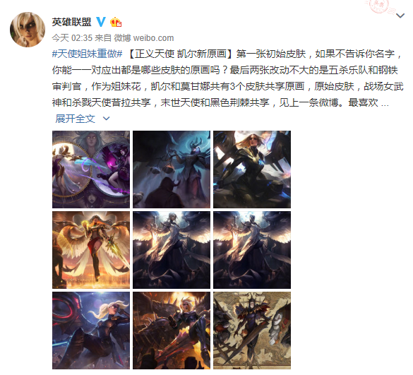 昨日,官方公布了天使姐妹重做完成的消息,两位英雄——凯尔和莫甘娜——都在不同程度和不同方面上得到了优化以及改良。这两个许多年无设计师问津的英雄,总算在今年得到了翻身的机会。 今日官方又晒出了两位英雄在重做后更新的原画,每个皮肤的原画都得到了修改,而由于是姐妹花,凯尔和莫甘娜还有三个皮肤属于共享原画。 凯尔 原文如下: 【正义天使 凯尔新原画】第一张初始皮肤,如果不告诉你名字,你能一一对应出都是哪些皮肤的原画吗?最后两张改动不大的是五杀乐队和钢铁审判官,作为姐妹花,凯尔和莫甘娜共有3个皮肤共享原画,原始皮肤,战场女武神和杀戮天使昔拉共享,末世天使和黑色荆棘共享,见上一条微博。最喜欢圣光审判和银白审判了!另外,第四个皮肤更名为Transcended,中文名未定,对应原大天使米迦勒皮肤。 莫甘娜 原文如下: 【堕落天使莫甘娜新原画】第一张是原画,作为姐妹花,凯尔和莫甘娜共有3个皮肤共享原画,原始皮肤,战场女武神和杀戮天使昔拉共享,末世天使和黑色荆棘共享。后面按照顺序分别是地狱厨房,刀锋女王,最后胜利女神,鬼魂新娘,紫金罗刹,魅惑女巫这4张改动较少。 |