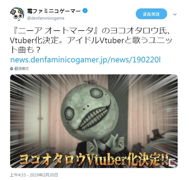 Square Enix在昨日举办了纪念《尼尔:机械纪元》两周年的庆典直播,爆料了不少关于游戏的新合作内容,而其中最令人捧腹的还是鬼才横尾太郎,居然要带着他那标志性的头套作为一名Vtuber(虚拟主播)出道。 首先,在直播中发布了一组全新的2B小姐姐表情包(Line专用)、安利了一波《尼尔:机械纪元》PS4年度版、宣布了与横尾太郎监督的手游《死亡爱丽丝》的新联动。随后便由游戏制作人齐藤阳介正式发表了横尾太郎虚拟油管主播出道的消息:头套横尾将在3月NICONICO动画主办的一个VR电台直播中虚拟主播出道。齐藤阳介作为该节目的制作人之一抱怨道:“横尾太郎在一段时间内不停疯狂暗示自己想成为一个Vtuber,所以便有了这个企划。” 随着虚拟主播这个概念在这两年内的火爆,Vtuber从一开始的KizunaAI绊爱这种美少女系逐渐拓宽,如今也有不少以搞怪、硬核为主的虚拟主播受到追捧,不知道一向以诡异头套示人的横尾太郎,会在直播中给大家带来什么呢? |
