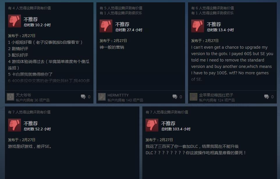 《尼尔:机械纪元》年度版已在Steam上发售,国区售价274元,暂不支持中文,该版本包括游戏本体和8款DLC,已购买过本体的玩家不能再买年度版。现在根据Steam页面显示,该作遭到了许多玩家的差评。 通过Steam的玩家评测检测可以看到,在年度版推出之后,玩家评测里涌现出了大量差评。 给出差评的玩家,一部分人是针对SE没有考虑过老玩家的感受(他们曾花高价购买游戏),游戏售价最初为199元,后来上涨到412元,现在完整版又降到274元,让人无力吐槽。另一部分人表示SE没有推出原版升级为年度版的选项,让想入手年度版的玩家非常尴尬。 原版的《尼尔:机械纪元》PC版在优化上还存在很多问题,而这次的年度版也只是增加了内容,却没有更新补丁。许多玩家想顺畅体验游戏,还需要第三方补丁,这也让人颇为不满。而且游戏PC版依然不支持中文,让国内玩家更加不满。 针对目前这些问题,SE后续将如何处理,我们将持续关注。 |