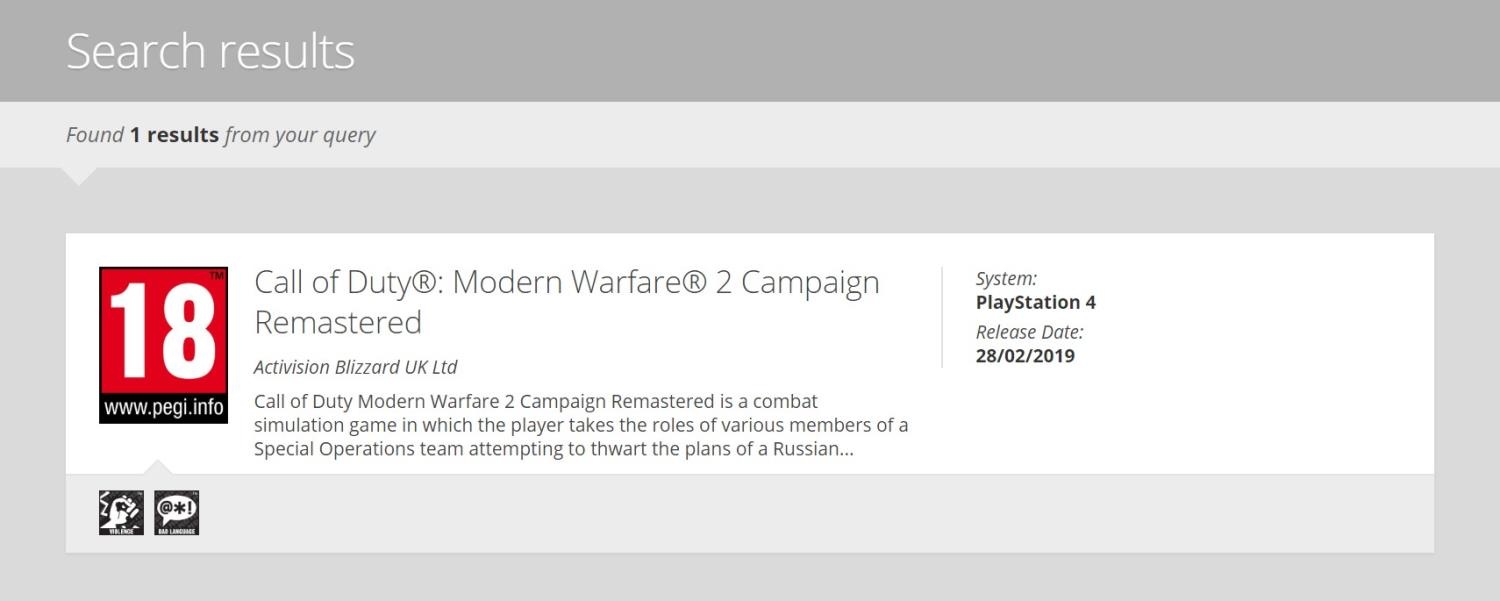 欧洲游戏分级机构PEGI已经完成了对《使命召唤6:现代战争2战役重制版》PS4版的分级,确认了《使命召唤6:现代战争2战役重制版》的存在。 2016年11月《使命召唤4:现代战争重制版》和IW开发的《使命召唤13:无限战争》高级版捆绑销售,2017年6月才得以独立出售,登陆了PS4,2017年7月登陆了PC和Xbox One。 使命召唤6:现代战争2 今年1月初时,YouTube用户Chaos爆料称,《使命召唤16》仍然注重的是多人玩法,而单人战役则非常偷懒地使用《使命召唤6:现代战争2》单人战役的重制版取代,(不包括No Russian任务),可能之后还会加入“现代战争3”的单人战役。 不过在上个月的财报会议上,动视总裁Rob Kostich确认《使命召唤16》将有一个全新的战役模式。2019年的《使命召唤16》由IW开发,此前有传言称是《现代战争4》。 |