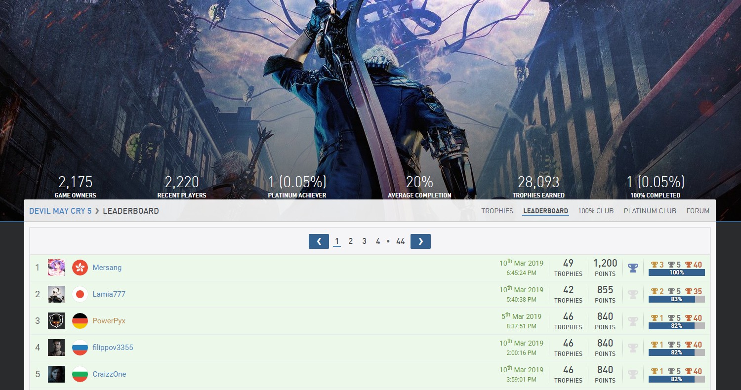 今日凌晨,国内高玩Mersang在微博晒出了《鬼泣5》的白金奖杯,而他也是全球首个获得白金奖杯的玩家!截止发稿前,PSN Profiles页面奖杯排行榜上仍然仅有他一名玩家拥有白金奖杯。 昨天我们曾报道这位玩家时PS4成就榜第一,面对白金奖杯有些心态爆炸,为什么呢?因为《鬼泣5》的白金奖杯确实十分难获得,其中必须要在【Hell and Hell】模式下获得全关卡S评价,这个只要一击必死,怪物还拥有400%伤害及血量的关卡里容不得一丝失误,仅有3次复活机会,难度实在令人发指。也就是在这么苛刻的条件要求下,国人玩家Mersang拿下白金。 大家也要加油啊!