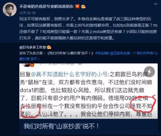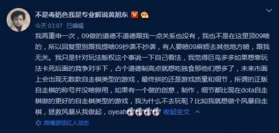 前两天凌晨,知名电子竞技解说员黄旭东对@巨鸟多多工作室发布的文章《我们对所有“山寨抄袭”说不!》转发并评论。 在微博详情中,他表示,游戏玩法不可能有版权,未来市面上还会出现无数款“自走棋”类型的游戏。 而这一事件的来龙去脉又到底是怎么回事呢?众所周知,《Dota自走棋》一朝爆火后市面上也出现了不少“蹭热点”的各类“自走棋”,而其中最为有名的就是由Dota1著名选手“伍声2009”搞出来的“09自走棋”了。 这款游戏除了在英雄模型上面跟《刀塔自走棋》不一样之外,在玩法上面几乎完全一样。这样的猖獗之举,巨鸟多多工作室肯定忍受不了,想想看当初他们连TX都敢公开拒绝,现在面对09这样一个抄袭者,肯定不会手软。 但最尴尬的事情就是在国内游戏圈普遍认为所谓的抄袭只能指游戏具体数值和代码,但是玩法并不能作为抄袭的指正。 正如黄旭东认为巨鸟多多试图以玩法作为版权“吃独食”实在不可取,就如同moba游戏的火热,不仅诞生了《Dota》和《英雄联盟》,也有《风暴英雄》、《300英雄》等游戏以其独有的优势在这个模式下分一杯羹。 毕竟商家都会为了迎合市场做出竞争,玩家也会选择更出色的作品,并不存在正版玩法为王的现象。想要赢得玩家的垂青,更重要的是优化游戏的质量和细节。 这场正版抄袭之争必将持续很长一段时间——随着国产游戏行业的快速发展和进步,这个问题将持续不断地伴随着整个行业的发展而更新换代,但取决于我国游戏行业的现状,确实很难彻底解决。 但对玩家来说或许这样才是最好的结果?有了良性竞争才会有质量更加优秀的游戏作品不是么?那么在座的诸位玩家,对于这场正版亦或抄袭的争端,你们又怎么看呢? |