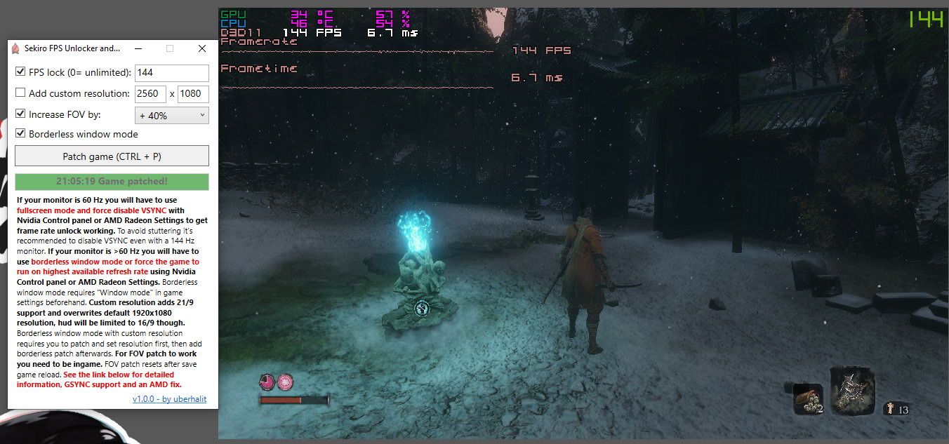 之前网上有一款可以解锁《只狼》游戏帧数上限的Mod,不过有玩家反馈这款Mod会修改一些游戏文件,所以在使用期间会出现一些问题。近日出现了最新的解锁帧数MOD,据说该Mod不会修改玩家的任何游戏文件。 新解锁帧数MOD下载地址:点击进入 据悉,最新的解锁帧数MOD与所有游戏版本兼容,而且玩家在使用这款Mod时不会有被禁用的风险。 该Mod通过设置新的自定义模式将帧率限制解除,添加了自定义分辨率,支持21/9宽屏(将覆盖默认的1920×1080分辨率,HUD限制为16/9),还可以在窗口、无边框和无边框全屏模式之间自由切换,该Mod将在游戏启动时自动启用。 |