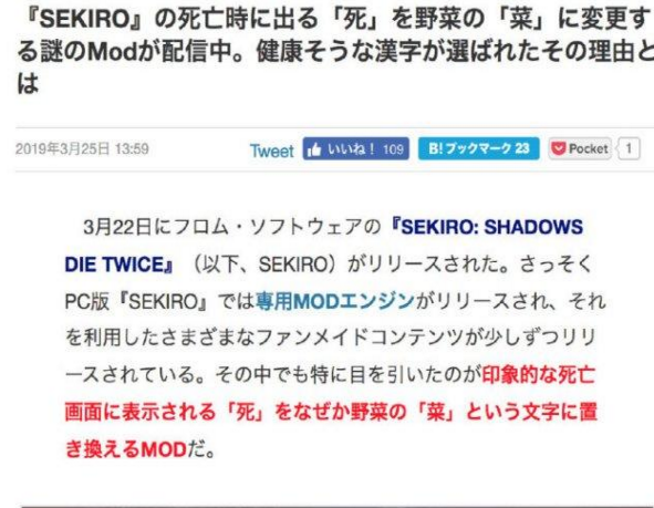 近日以来,《只狼:影逝二度》(以下简称只狼)在3月22日全球的发布可以说瞬间拉爆了众多自虐倾向玩家的兴奋点。 steam游戏社区中一片火爆的景象以及各路直播平台主播的直播以及录播视频也让不少路人玩家开始通过各种渠道来了解这款游戏。作为《黑魂》系列与《血缘诅咒》以后宫崎老贼的最新作品,《只狼》的难度相较于宫崎英高此前的作用有过之而无不及。 虽然少了不少《黑魂》系列中诸如箱子怪以及黑暗深渊等的超坑设定,而且《只狼》游戏流程中还增加了能够让玩家原地复活的设定。 这让不少暴打薪王、拳打王城二少、脚踢不死街的玩家以为他们自己能够轻松通关,但其实最终的战斗结果却与他们的想象完全不同——这些玩家都被boss以及各种精英怪摁在地上摩擦。 而作为新游戏热度的检测机,众多主播大佬在《只狼》面前可一点不比普通玩家好到哪里去。有人截图过某直播平台主机区的一片惨淡景象,而展现出来的画面实在是让人忍不住喷饭。 玩家在《只狼》游戏中被击杀时画面会显示出一个巨大的“死”字,而这样的画面在这几天也已经成为了新玩家受苦的标志图。 而人民群众的智慧又向来都是无穷无尽的,更何况是对于这种单机大作的改造——游戏刚刚新鲜出炉不久,就已经有大神在网上公布了对于《只狼》死亡画面的改造mod。 一个“死”字被大神们改成了一个又一个相当有趣的汉字,包括并不仅限于“菜”,“傻”以及问号,充分发挥了玩家们的聪明才智和恶搞心理。并且还引起了日本人的好奇,为什么要用“蔬菜”的“菜”这么健康的字来代替呢?看来中华文化博大精深! 你以为这样就完了吗?还有“?”mod,“草”mod也吸引了日本媒体的关注,当然他们肯定是不知道真正意思的,相信不久后也会引起他们的注意! 不知道玩家们你们是怎么看待只狼的这些字体mod呢? |