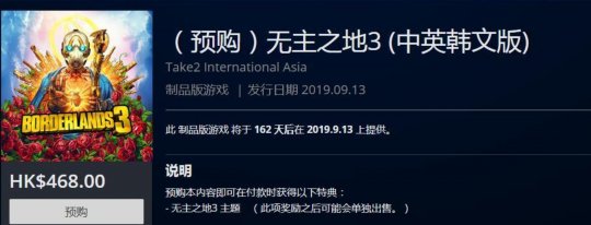 《无主之地3》目前已经在PSN港服商店开启预购,标准版468港币(400元RMB),豪华版642港币(549元RMB)。超级豪华版914港币(782元RMB),支持中文。 其中预购豪华版包括复古外观包、霓虹外观包、Gearbox外观包、玩具箱武器包、经验值与战利品掉落加成模组。预购奖励为《无主之地3》黄金武器皮肤包。 超级豪华版目前正在预购打折中,截止到9月16日之前,折扣16%,目前售价767港币(656元RMB)。 超级豪华版包括豪华版的所有数字奖励和预购奖励,除此以外,还包括《无主之地3》的季票。季票里含有:4个剧情DLC,内含全新故事、任务和挑战;屁屁种马武器皮肤、饰品和手雷模组。 《无主之地3》让玩家扮演一名宝藏猎人 - 拥有强大能力的寻宝猎人,与游戏令人眼花撩乱、看似无穷尽的成千上万件武器完美相配。《无主之地》受到威胁:疯狂的克里普索姐弟伙同强盗部族试图获取银河的终极权力,而且只有玩家能阻止他们。 《无主之地3》传承了《无主之地》传统,可以让多达4名玩家组队合作游玩。在《无主之地3》里,与其他宝藏猎人组队更容易了,因为无论你的角色等级和任务进展如何,你都可以和朋友一起玩。当你在预设的合作模式下和别人一起游玩时,队伍中的每一个人都能对敌人造成实质伤害,更重要的是,在你掠夺敌人尸体时,将可获得等级相称的奖励。 你的《无主之地3》冒险将从《无主之地》和《无主之地2》的故事舞台、末日后世界的荒漠星球潘朵拉开始。但你也将前往《无主之地》银河里的其他星球搜寻宝库和战利品。如果你有仔细观赏的话,你会在今天的预告片中发现其中一些星球,而且上头住着一些新敌人。如果你打算观光游览一番,你得先和当地人打交道。 《无主之地3》将于9月13日发售,登陆PC,PS4和Xbox One,其中PC版抢先登陆Epic商城,限时独占半年左右,2020年4月再在其他PC数字平台上线发售。 |
