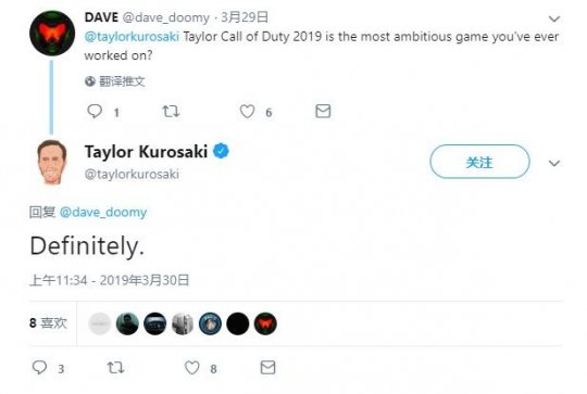 在前年大锤开发的《使命召唤14:二战》和去年T组开发的《使命召唤15:黑色行动4》之后,今年的《使命召唤16》由IW开发。尽管这款新作尚未公布,但已经有不少的传言流出,此外动视官方和IW自己也已经开始造势。最近在Twitter上,IW开发者暗示《使命召唤16》将是IW有史以来开发的最具野心的一作。 当被粉丝问到2019年的《使命召唤》是不是他们最具野心的一款时,本作的叙事总监Taylor Kurosaki回答地也很坚定:“绝对啊(Definitely)”。 动视之前曾在财报上向投资人表示《使命召唤16》将有“全新的单人战役,一个巨大和扩张性的多人世界和一些有趣的合作玩法”。