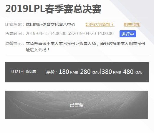 《英雄联盟》LPL春季赛决赛原定于今天下午2点开启售票,但由于售票页面短时间流量涌入激增而崩溃,售票窗口暂时下架,在紧急修复后于3点重新开启。 而重新开启后没过多久,售票页面便显示“已售罄”,可见本次决赛依然十分火爆,又到了一票难求的程度。 2019英雄联盟职业联赛春季赛决赛将于4月21日在广东佛山国际体育文化演艺中心举办,届时,在季后赛中脱颖而出的JDG与iG战队将汇聚佛山,为所有召唤师带来一场精彩的对决盛宴。 |