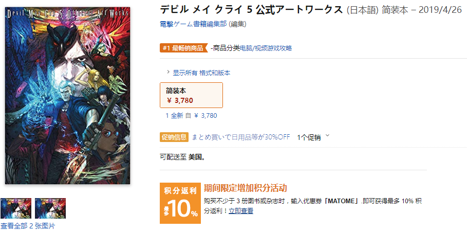 近日《鬼泣5》官方艺术画集单行本的封面曝光,尽管目前尚不知道该单行本是否会在日本以外的区域发行,但是该商品目前已经上架日本亚马逊,开启了预售。 根据日本亚马逊上的商品信息,这本简装本定价为3780日元(约合人民币227元),将于4月26日正式发行,感兴趣的小伙伴可以关注一下。 最后附上日本亚马逊的商品链接:点我传送。 |