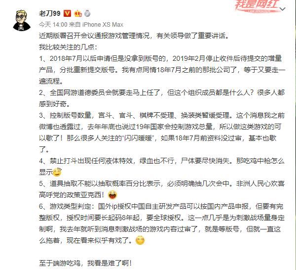 随着国家相关部门改革的完成,游戏版号的发放已经逐渐恢复了正常。在早些之后,就有知情人士爆料称《绝地求生》的国服已经接近审批完成,很快就能拿到版号了。然而近日,知名游戏人老刀99的爆料,却让对吃鸡国服翘首以盼的玩家们心凉了半截。 从老刀99的微博来看,“禁止打斗出现任何液体特效”,那就说明即使改变颜色,吃鸡的出血效果也是不能够被展现出来的。“尸体要尽快消失”这个倒没什么问题,PUBG本来就可以很快变成盒子。现在的PUBG中,玩家被击中是有声音特效提示的,即使失去液体特效也没有太大问题。不过没有液体特效,对于玩家判断是否击中对手却有着很大的影响。 现在,游戏中的液体特效是玩家们判断是否击中对手的唯一方法。一旦这个特效在国服被禁止,那么整个国服就又将面临着一次大规模的回炉重做。去掉液体特效是一方面,另一方面增加新的声音特效或者其他特效来帮助玩家们判断是否击中对手,也是国服将要面对的工作之一。对此,有网友就表示,吃鸡的国服是真的要凉了。 网友的担心不无道理。以绝地求生在国内的现状来看,如果国服能够今早上线,吃鸡或许能够再一次崛起。但是如今,PUBG国服面临着国家新的规定,等待它的或许是再一次的回炉重做。而这段时间究竟有多长,谁都无法保证。在重做完成之后,这款游戏的热度或许已经彻底消失。 一直以来,老刀99在圈内就以消息的准确度而著称。在这项规定出台之后,他自己也表示“至于端游吃鸡,我看是难了啊!”不过小编觉得,目前还不能太悲观。只要腾讯方面动作足够迅速,在短时间内完成相关的修改,那么国服的《绝地求生》还是有很大的希望的。 那么问题来了,各位小伙伴觉得《绝地求生》的国服还有希望吗?欢迎大家在下方的评论区说出你的想法哦! |