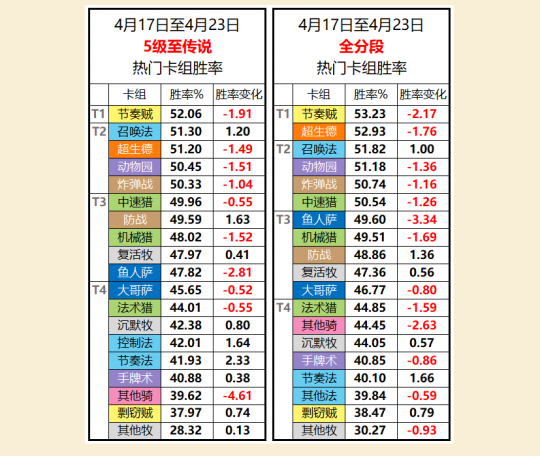 在新扩展包“暗影崛起”上线之后,经过了半个月的乱战,《炉石传说》的标准天梯环境终于逐渐稳定了下来。知名游戏社区NGA也发布了最新的天梯环境统计,接下来就让小编带领大家一起去看一下吧! 从NGA的数据统计中可以看到,节奏贼不论是在5级至传说分段还是全分段,都是T1级别的卡组。随着高分段的针对卡组有所增加,超生德的胜率得不到保证,节奏贼一枝独秀。在版本初期流行一时的炸弹战,虽然目前依旧是标准天梯中的热门卡组,但是毒瘤的程度已经下降了很多了。强能雷象与发条地精的组合,不再是令人头疼的存在。 超生德在前期最大的节奏点,莫过于大法师瓦格斯。一旦瓦格斯被迅速清掉,超生德启动速度就会放慢不少。为了对付节奏贼,天梯中越来越多的防战也让超生德的日子不是那么好过。 值得一提的是,在法术猎无力捍卫猎人的荣耀之后,中速猎再度扛起了猎人的大旗。除了面对节奏贼等少数几个卡组稍显劣势,中速猎面对目前标准天梯中的大部分卡组都有一战之力。令人遗憾的是,“圣光双废”并没有在逐渐稳定的环境当中占据重要的地位。失去了奇偶体系之后,骑士的一蹶不振在情理之中;而成型速度过慢的牧师,在面对一众快攻卡组的时候生存率相当堪忧。 对于目前的标准天梯环境,相信暴雪官方也会注意到。小编觉得HCT世锦赛是一个非常重要的节点,在世锦赛过后,暴雪或许会着手放出平衡补丁来改善标准天梯的生态环境。节奏贼目前一家独大的场景,应该并不会持续太久。 那么问题来了,各位小伙伴觉得平衡补丁发布之后,盗贼会不会继续强势表现呢?圣骑士和牧师又能否摆脱垫底的排名呢?欢迎大家在下方的评论区说出你的想法哦! |