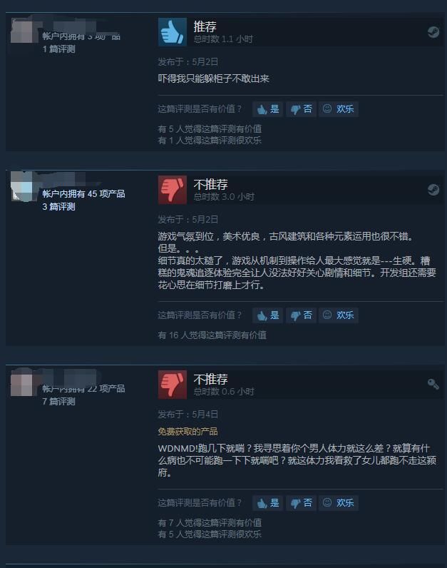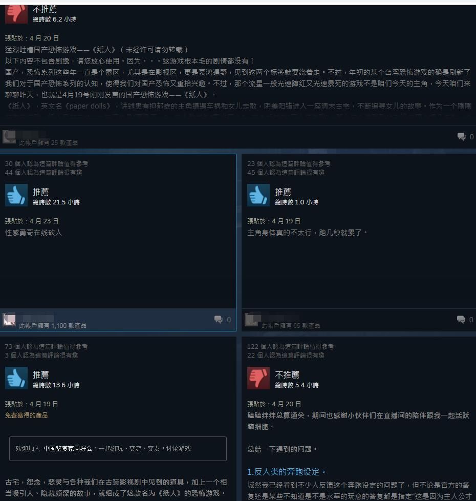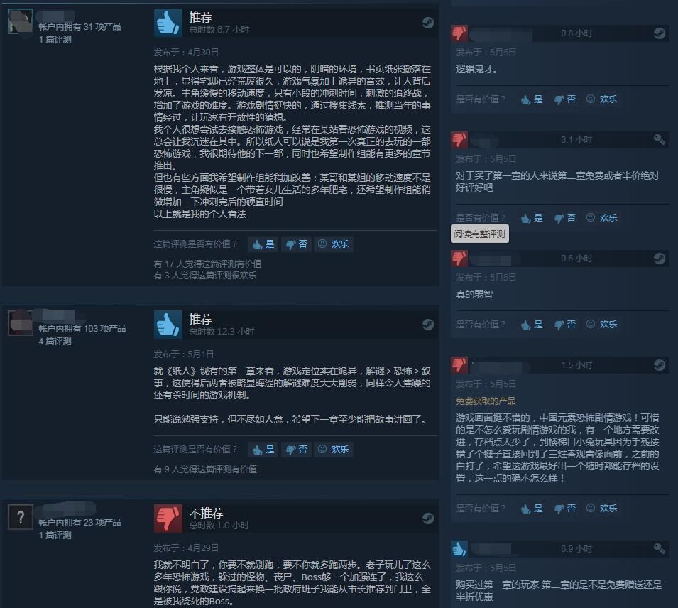国产恐怖游戏《纸人:第一章》于4月19日正式上线Steam,这款以清末古宅为背景的第一人称恐怖冒险解谜游戏,在上线半个月后反响如何呢?我们一起来看看。 《纸人:第一章》在上线半个月后收获了264篇评测,其中好评率为62%,整体评价仅为褒贬不一,这稍稍有些出乎预料。在游戏发售前,国产的加持、恰到好处的预告片和优秀的游戏画面成功吸引了不少玩家的视线,在某恐怖游戏作死自爆之后,玩家都对《纸人》寄予厚望。 从评论中我们不难看到,玩家给出差评的槽点集中在这么几个方面:定价、剧情逻辑和主人公的动作上。 首先游戏定价58软,对于一款完整的3D游戏来说没什么可以质疑,但是目前仅仅发售了第一章的内容,不少玩家认为学习叙事游戏大厂搞分割商法不是个好思路。 接下来是游戏的内容。画面、音乐以及氛围的营造人人叫好,但是剧情和逻辑方面还是富有争议。有的认为根本谈不上恐惧,操作、机制等细节层面太过僵硬,制作组应该继续打磨。 最后在好评中都会被吐槽的一点就是主人公的移动速度了,几乎所有玩家都在呼吁制作组让主角能够真正“跑”起来,而不是一个走三步就喘气的残疾人…… 至于国外玩家的评测,还是以好评居多,只是不少外国友人抱怨翻译不走心,英文配音感觉像谷歌翻译,影响了他们感受和理解游戏。 总的来说,国内环境下这款游戏玩家普遍要求比较严格,另外制作组更新在发布后已经断档十多天,令玩家感到58花的略有不值。国外则保持了一贯的对国产恐怖游戏的好印象,得到了诸多油管主播的推荐。也希望制作组能够着手解决差评反映的一些核心问题,在国际化开局表现良好的同时提升游戏本体的质量。 |