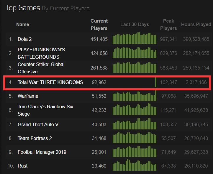 在APEX彻底凉凉之后,虽然有隐形守护者这样的小爆款独立游戏出现,但是却并没有成为全民话题。不过,备受期待的《全面战争:三国》(以下简称全战三国)却有望能够接棒APEX成为新的现象级游戏。在发售之后,网络上铺天盖地的表情包,已经充分说明了玩家们对于这款重量级大作的期待有多高。有的玩家甚至表示,为了匡扶汉室即使辞职也在所不惜! #图片来源于百度搜索 在游戏发售之后,仅仅用一天的时间就冲到了steam在线玩家统计排行榜的第四名,全战三国的魅力究竟有多大已经不言而喻。作为一款备受期待的策略大作,全战三国拿到这样的成绩还是相当令人满意的。 #图片来源于steamcharts 从游戏的总体质量上来讲,经历过跳票的全战三国显然是没有辜负玩家们的期望。不仅继承了全战系列的经典设定,对于三国历史的还原也做得相当不错。虽然在大多数方面全战三国都表现得非常出色,然而在一些细节方面,全战三国还是有改进空间的。比如这一条消息,谁能告诉小编一个平民能把吕布打成重伤是什么鬼??? #图片来源于微博搜索 尽管在一些细节方面做得不够出色,但是大多数玩家还是表示瑕不掩瑜,游戏的品质还是比较给力的。目前在各大直播平台上,全战三国的直播热度也是上涨得飞起。不论是对于全战系列的老玩家,还是说喜欢三国题材游戏的玩家,亦或是准备入坑的新手,全战三国都是一个不错的选择。 全战三国能否维持目前的热度,还要看后续的DLC质量如何。毕竟对于全战系列来说,没有DLC的全战是不完整的。很多吐槽过这次全战三国黄巾DLC的玩家,如今也没有摆脱真香的命运。如果在后续的DLC当中能够继续保持现在的高品质,并且对游戏内的一些细节进行完善,那么全战三国绝对有希望成为下一个爆款游戏。 那么问题来了,各位小伙伴们在全战三国中会选择哪个势力呢?欢迎大家在下方的评论区说出你的想法哦! |