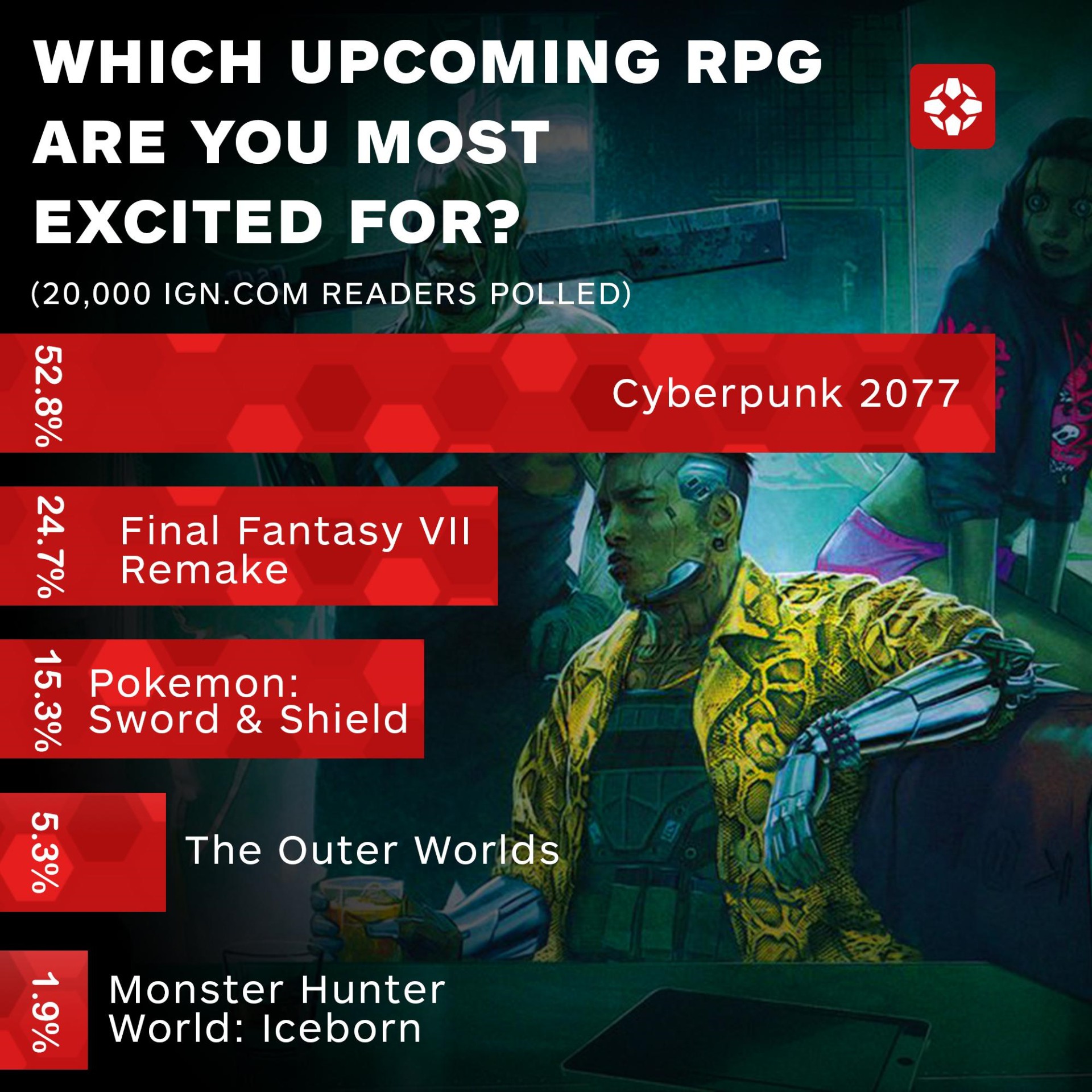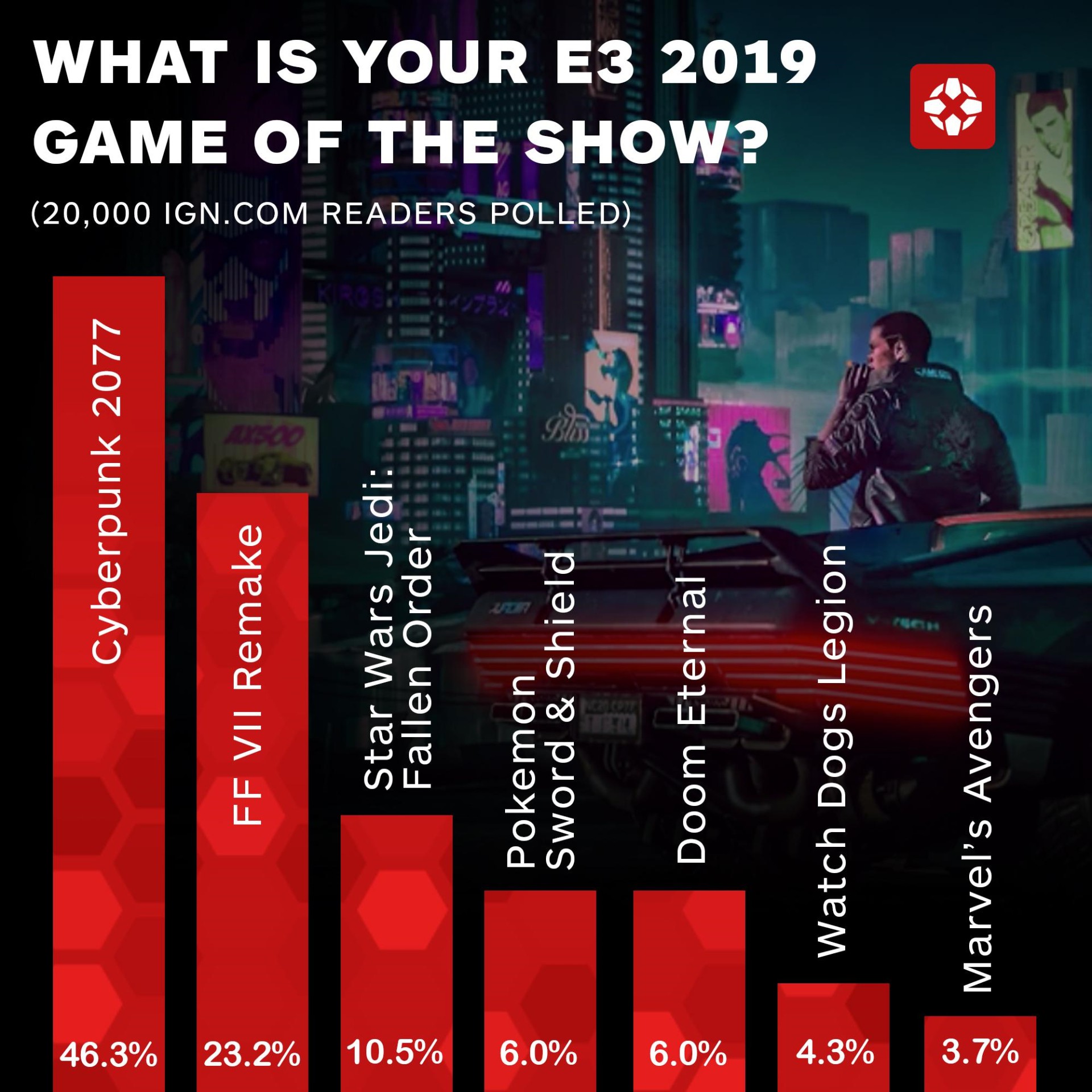 E3 2019大展虽然已经结束,但关于它的话题却依然在继续。IGN最近举行了一次关于E3 2019上热门游戏的社区评选,有上万IGN读者参与了这次活动,今天三个奖项“E3 2019最爱游戏”“最期待RPG游戏”“最期待射击游戏”出炉,而《赛博朋克2077》则拿下两项第一。 E3 2019最爱游戏: 赛博朋克2077 最终幻想7重制版 星球大战绝地:陨落的武士团 宝可梦:剑/盾 毁灭战士:永恒 看门狗:军团 漫威复仇者联盟 最期待RPG游戏: 赛博朋克2077 最终幻想7重制版 宝可梦:剑/盾 天外世界 怪物猎人:世界-冰原DLC 最期待射击游戏: 光环:无限 无主之地3 毁灭战士:永恒 使命召唤:现代战争 战争机器5 德军总部:新血脉 |