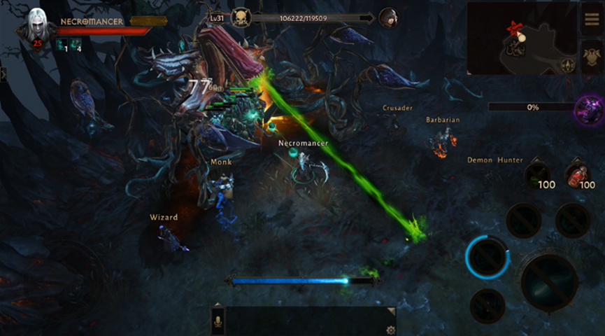 试玩的关卡内容也没有如同《暗黑破坏神3》第一章墓穴那种昏暗的光线,即使室内再暗,怪物的色彩对比差也相对明显,可以在眼睛不费力的情况下轻松找到怪物位置,暗黑氛围把控的恰到好处。 除了画质保持了端游一贯的品质,暗黑系列的职业特色也得以保留,武僧、野蛮人等经典角色一一再现,而研发团队也针对移动端操作新增了不少内容,不同职业不同技能的优化,在移动平台应该也能感受到良好的操作体验。 比如法师的冰锥技能,在按下技能后,技能指示圈会开始扩大,当施法条按满时,冰锥的攻击范围则达到极致,且可以通过移动按在屏幕上的手指控制施法方向。对于可选定释放区域的技能,玩家可以在点击技能后拖动来选择释放地点,这一设定与MOBA中的非指向性技能类似,对玩家的反应能力与预判能力都有一定的要求。 如果玩家选择了近战职业,操作也会随之改变,这类技能也被设计的更加符合近战职业的特色,例如野蛮人的招牌技能旋风斩,在释放后取消了技能范围显示,并且对持续性技能增加了持续时间提示,使玩家对战斗有准确的判断从而更好的选择下一步的行为。 至于原系列粉丝最关心的剧情,《暗黑破坏神:不朽》将背景故事设定在暗黑2代与3代之间,世界之石被毁后的阶段,游戏起到了在剧情中承上启下的作用——在最擅长讲故事的暴雪手里,相信剧情的质量无需担忧。 总体来说,作为暴雪经典IP的衍生作品,《暗黑破坏神:不朽》还是值得期待的。一方面,游戏已经展现出了部分暗黑系列的亮点;另一方面,相信暴雪也不会蠢到轻易的葬送掉经典IP。正如《暗黑破坏神》之父David Brevik所说: “你应该为暴雪提供一个尝试的机会,《暗黑破坏神:不朽》可能并不像你想的那样,你想要的肯定会有!” 在此,希望《暗黑破坏神:不朽》能够贯彻“暴雪出品,必属精品”的Slogan,让“真香定律”再度席卷全球。作为粉丝,小编当然也希望每隔断时间暗黑主系列都能有新作发布,但如果这期间你告诉我手游也有个外传游戏,我是真的不介意,但今年没PC类新游戏的锅暴雪还是甩不掉滴,以上。 |